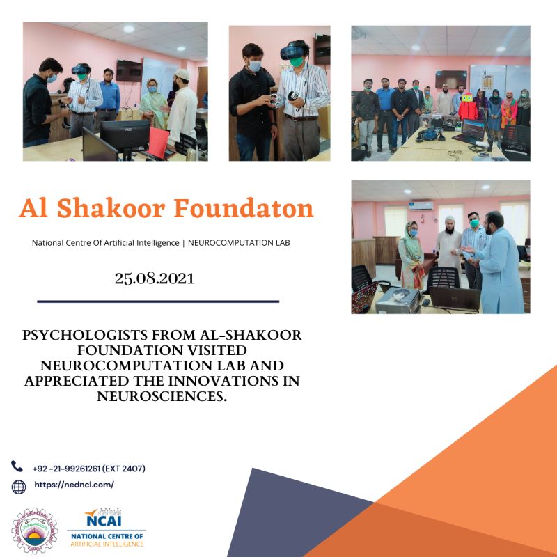 LinkPsychologists Mr. Muhammad Idress and Miss. Mishal Chaudry from Al-Shakoor foundation visited NCL - NED and appreciated the innovations in neurosciences.