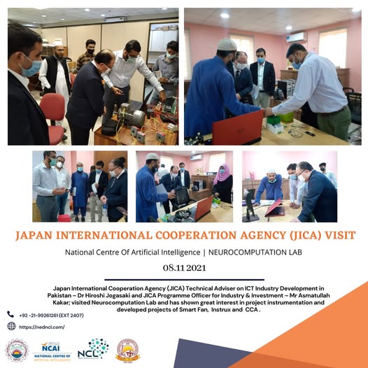 LinkJICA - Japan International Cooperation Agency Technical Adviser on ICT Industry Development in Pakistan – Dr. Hiroshi Jogasaki and JICA Programme Officer for Industry & Investment – Mr. Asmatullah Kakar visited Neurocomputation Lab - NCAI on November 8th, 2021.