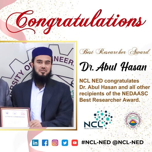 LinkNEDAASC Best Researcher Award to Sir abul hasan and team